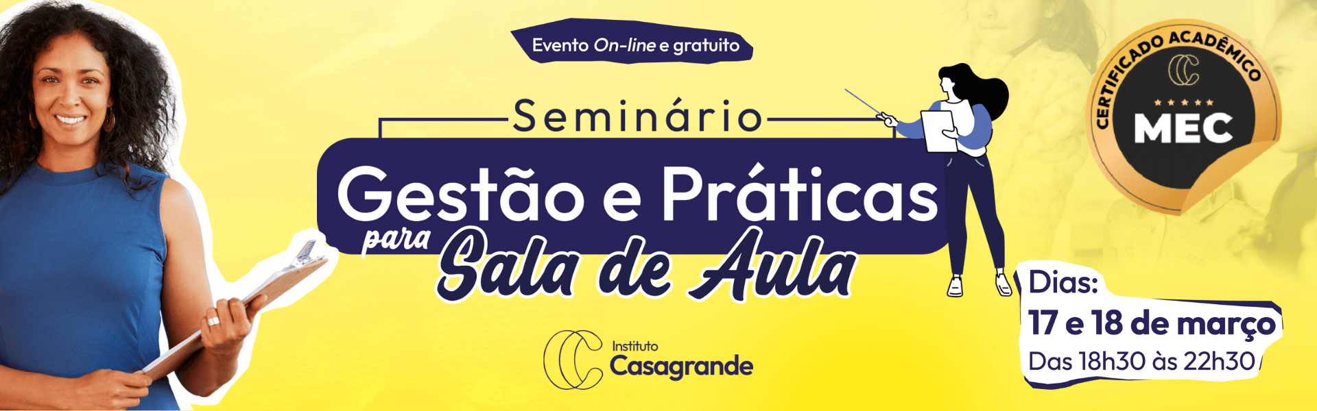 Faça parte da equipe de educadores vitoriosos. Inscreva-se em um dos cursos de pós-graduação digital do Instituto Casagrande. Todos os cursos são ministrados de forma on-line e contam com professores renomados, permitindo que você estude nos dias e horários de sua preferência.